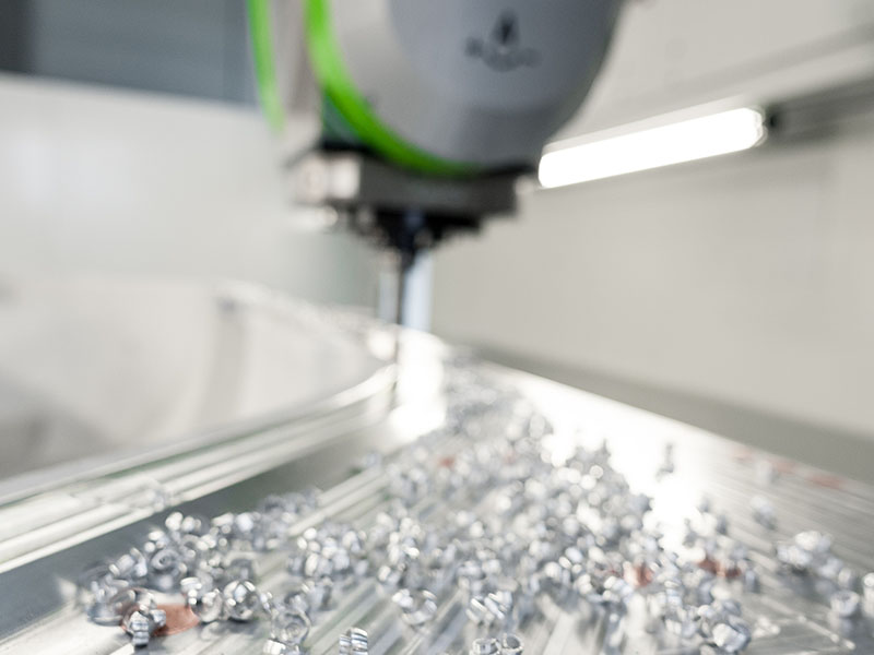 Das Beschneiden und Bohren der Bauteile mittels CNC-Fräse oder per Hand wird in unseren speziellen Beschneidungsräumen durchgeführt.