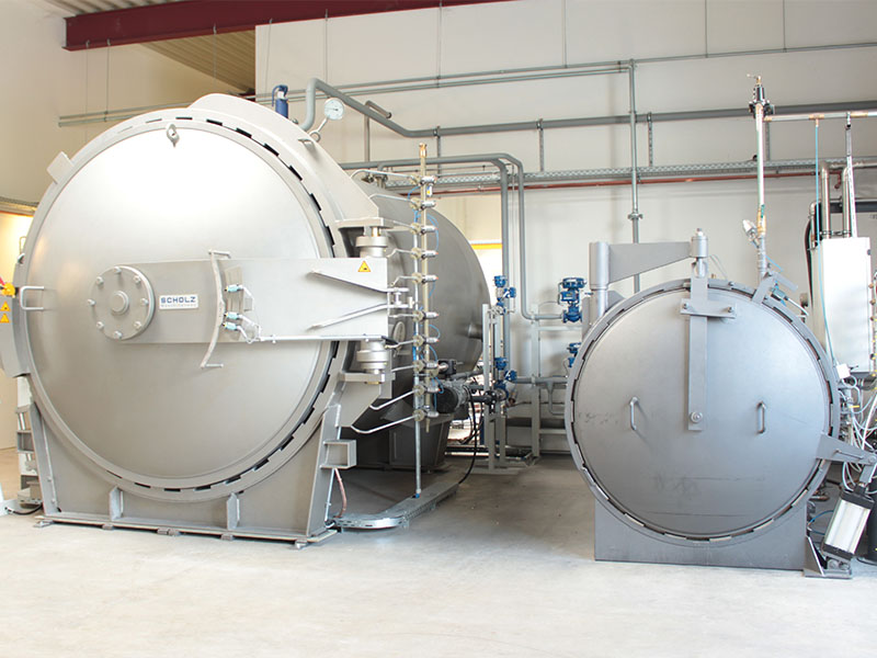 Nach dem Laminieren wird das Bauteil in den Autoklaven unter Druck und Hitze ausgehärtet.